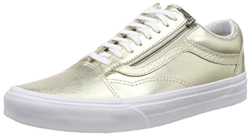 Vans Women Old Skool Zip Sneaker (Metallic Leather) Wheat Gold/True White Another classic of cult brand from California. With 8-hole lacing, rubber sole, logo patch and VANS Side stripe logo. The comfortable shoe suitable for all occasions and is by iconic design a must for anyone.